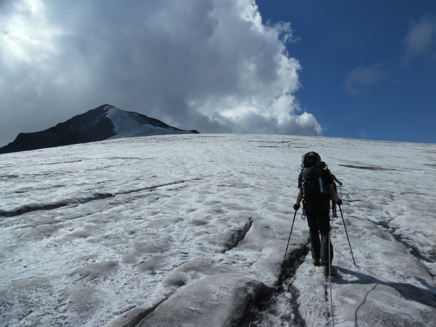 Diesen Leichtrucksack bekommst du gratis bei Tourstart. Darin kannst du eine Jacke, Trinkflasche, Riegel und Wertsachen etc. verstauen, wenn ein Rucksacktransport mit der Materialseilbahn zur Hütte möglich ist.Konditionelle Voraussetzungen: