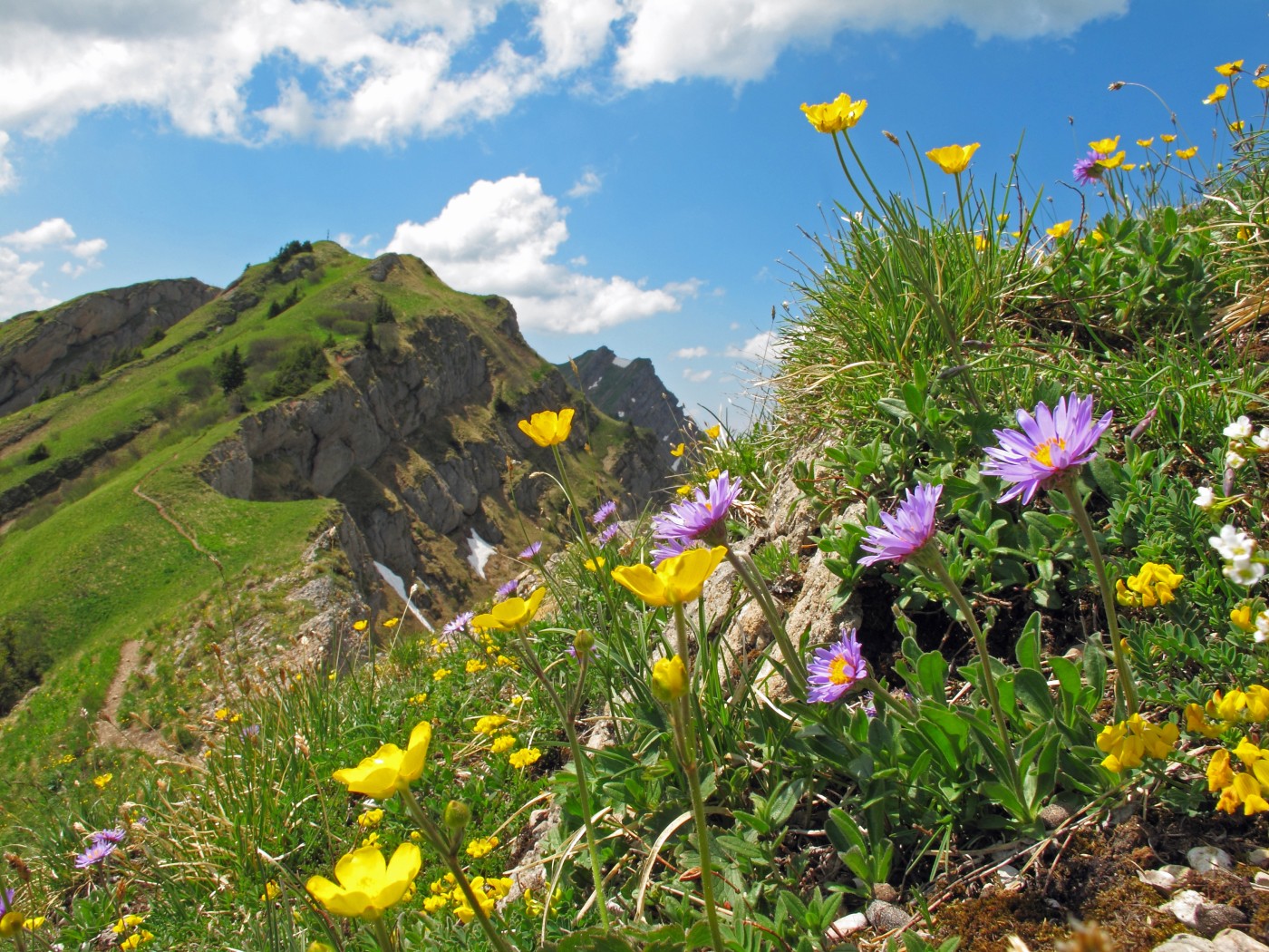 Und gute Bergwege gibt es im Allgäu genug. Genauso wie neugierige Steinböcke, die von ihren Felsvorsprüngen dem Treiben der Menschen belustigt zuschauen.
