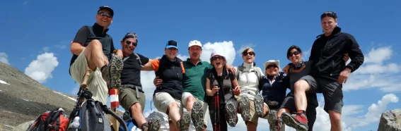 Südlich des Alpenhauptkamms sind wir im Frühsommer oft noch mit Altschnee konfrontiert! Deshalb rüsten wir unsere Teilnehmer mit snowline Spikes aus – damit können Schneefelder sicher überquert werden.