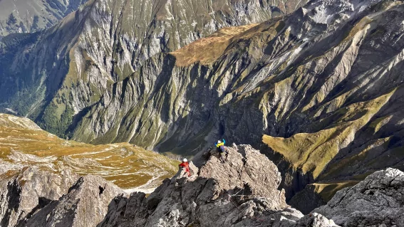 Unsere Heimat zeigt beim Klettern ihre ganze Vielfalt: Da sind zum einen die gut erreichbaren Klettersteige rund um Oberstdorf, zum anderen gibt es aber auch spektakuläre Alpinkletterrouten wie jene an der Trettachspitze, dem „Matterhorn des Allgäus“. Eine lange, fordernde Tagestour, geprägt von Gratkletterei, Ausgesetztheit und alpinem Erlebnis. Ein Klassiker der Allgäuer Alpen.